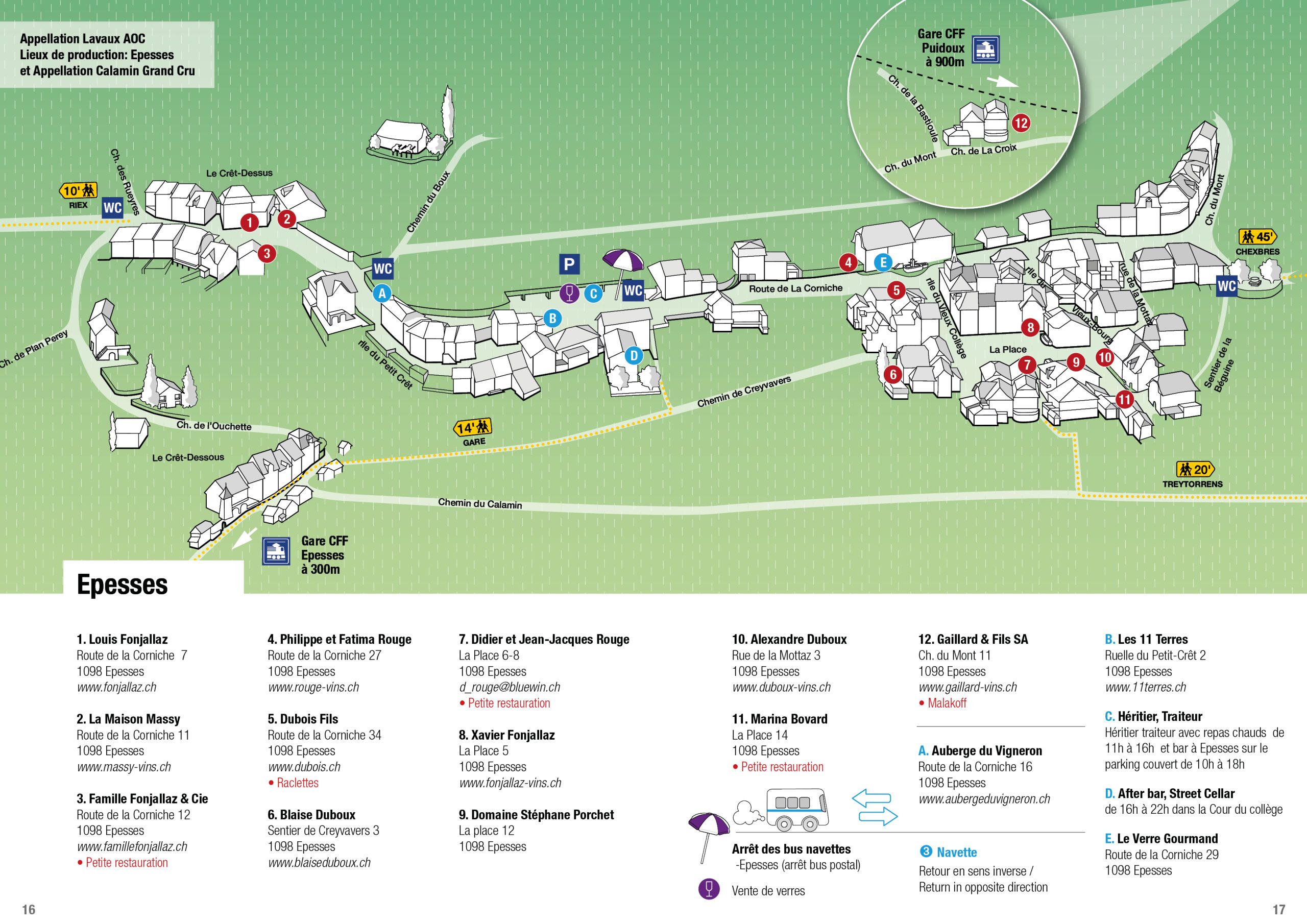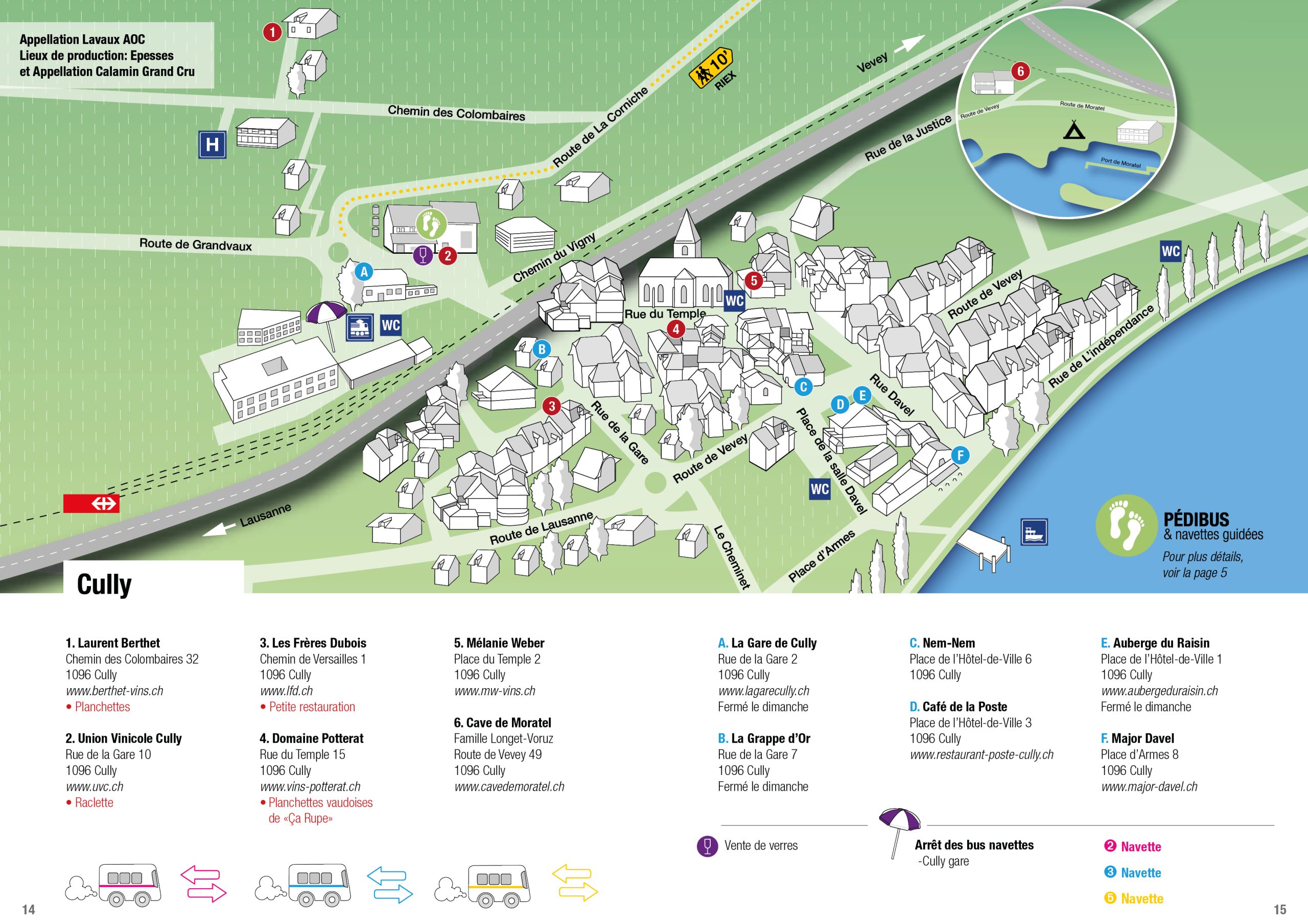 Plans, navettes et vignerons participants pour Epesses – Cully – Riex et Chenaux